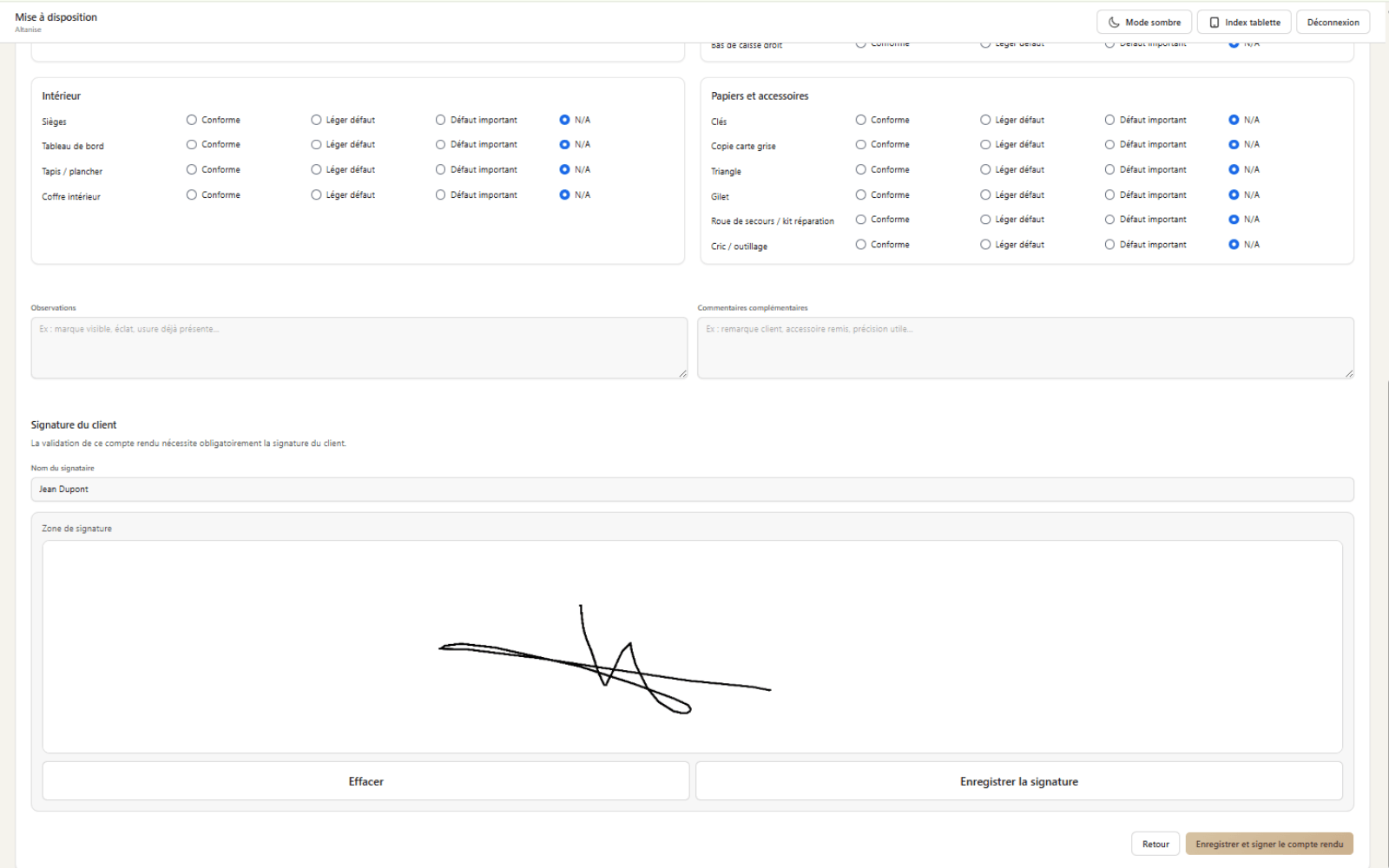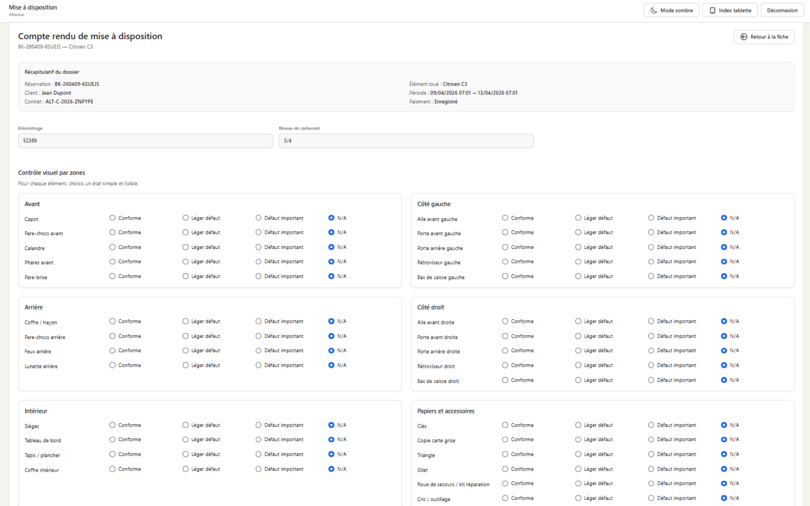 Cette logique permet de fluidifier la remise du véhicule, d’encadrer les vérifications et de conserver une trace plus claire des opérations réalisées au départ.